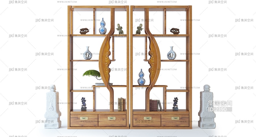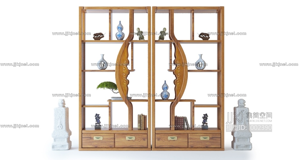 中式书柜中式古典书柜装饰柜3D模型3d模型下载