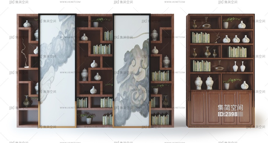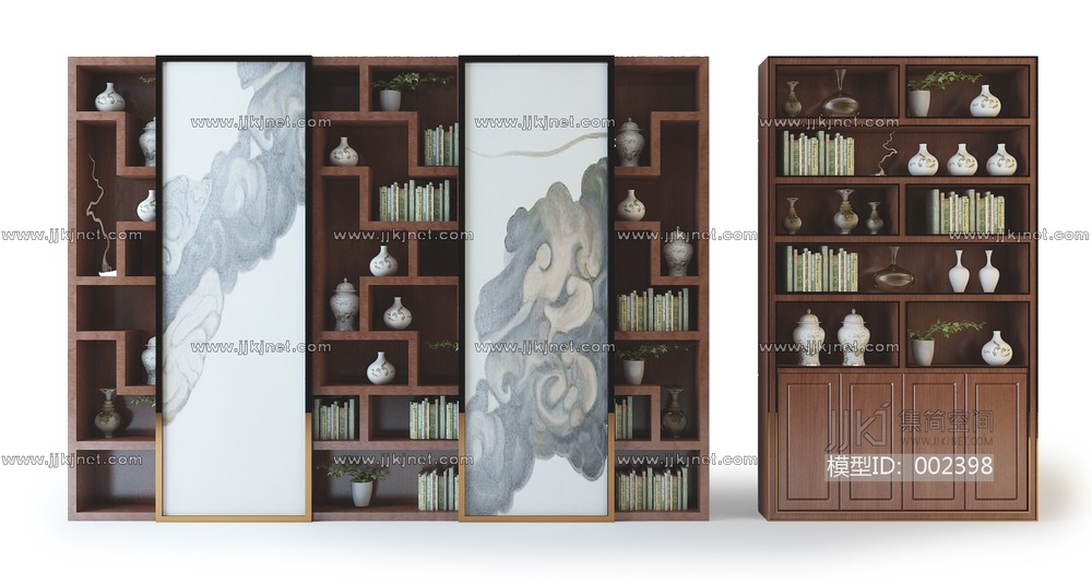 中式书柜中式古典书柜装饰柜3D模型3d模型下载