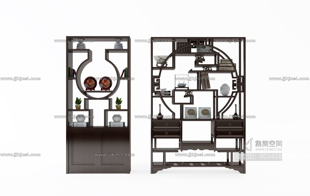 X19-323中式实木博古架装饰架摆件组合 3d模型下载 [模型ID:2438]