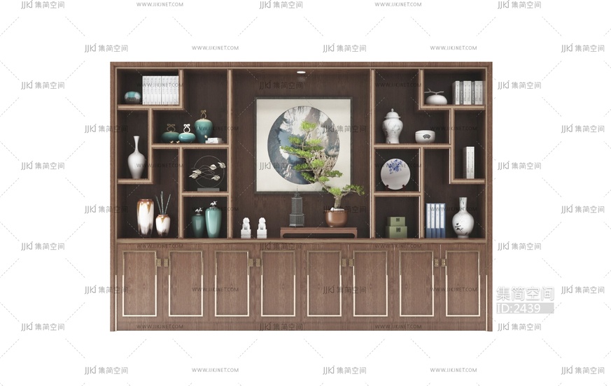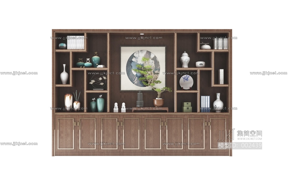 X20-323中式实木装饰柜摆件组合01 3d模型下载 [模型ID:2439]