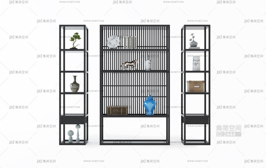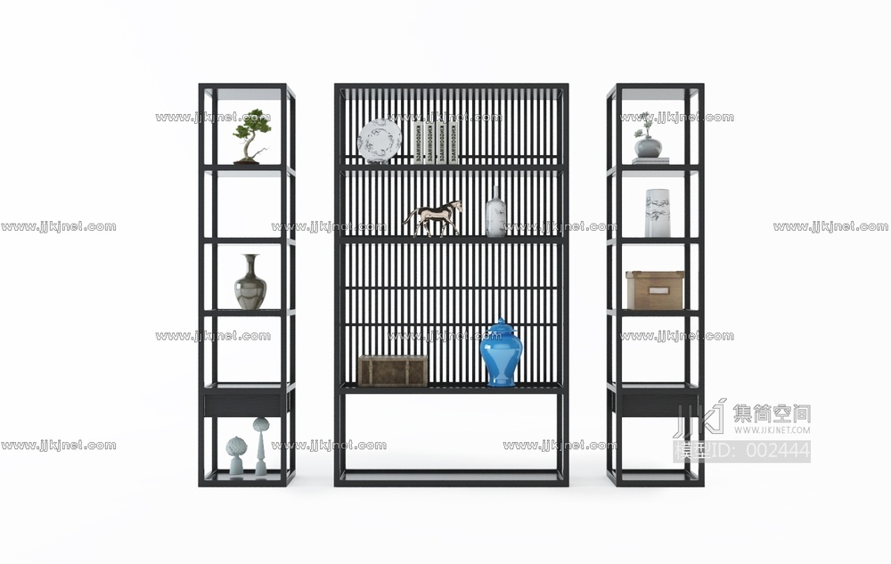 X25-323中式实木装饰架花瓶书籍组合 3d模型下载 [模型ID:2444]