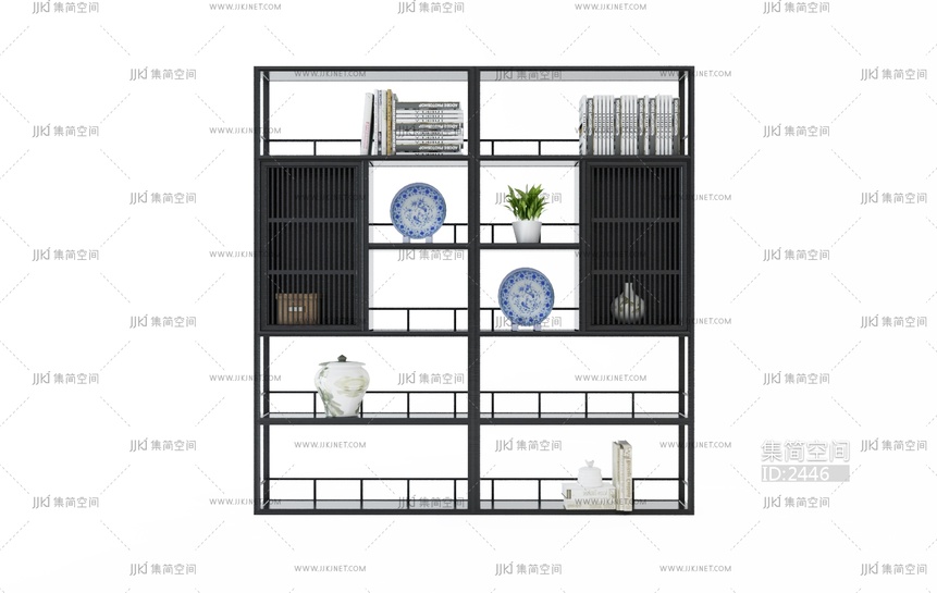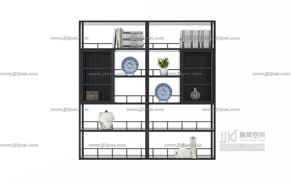 X27-323中式实木装饰架花瓶书籍组合 3d模型下载 [模型ID:2446]
