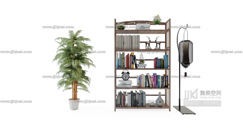 -新中式书柜 3d模型下载