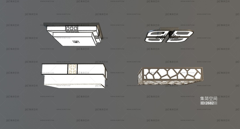 新中式吸顶灯,3d模型下载