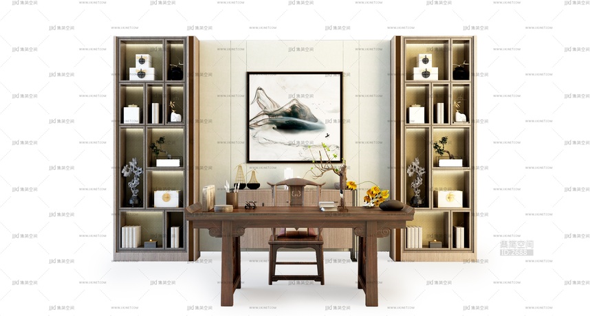 H03-0408中式书桌椅饰品摆件 3d模型下载 [模型ID:2688]
