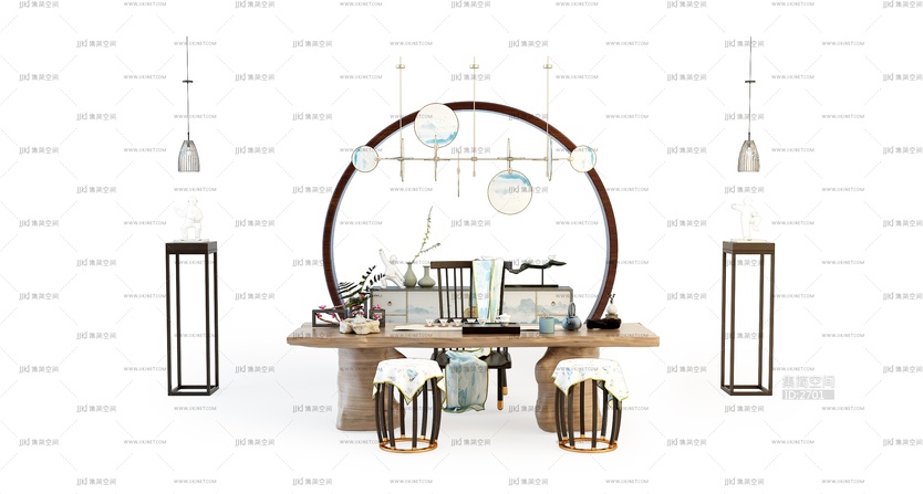 G11-0408茶桌椅 3d模型下载 [模型ID:2701]