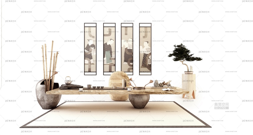 H09-0404中式茶台盆景组合 3d模型下载 [模型ID:2705]