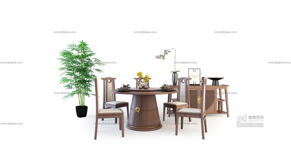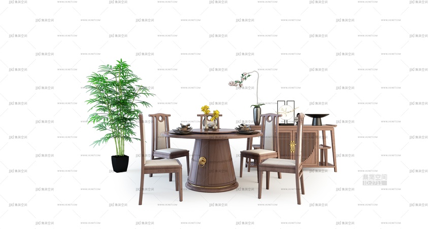X03-0404中式茶桌椅 3d模型下载 [模型ID:2711]