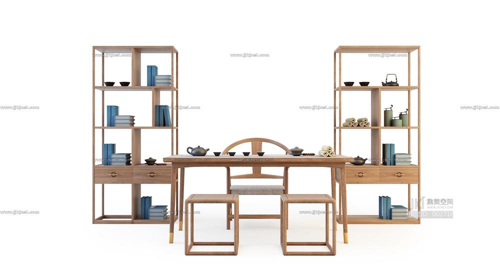 X08-0408中式茶桌椅组合 3d模型下载 [模型ID:2716]