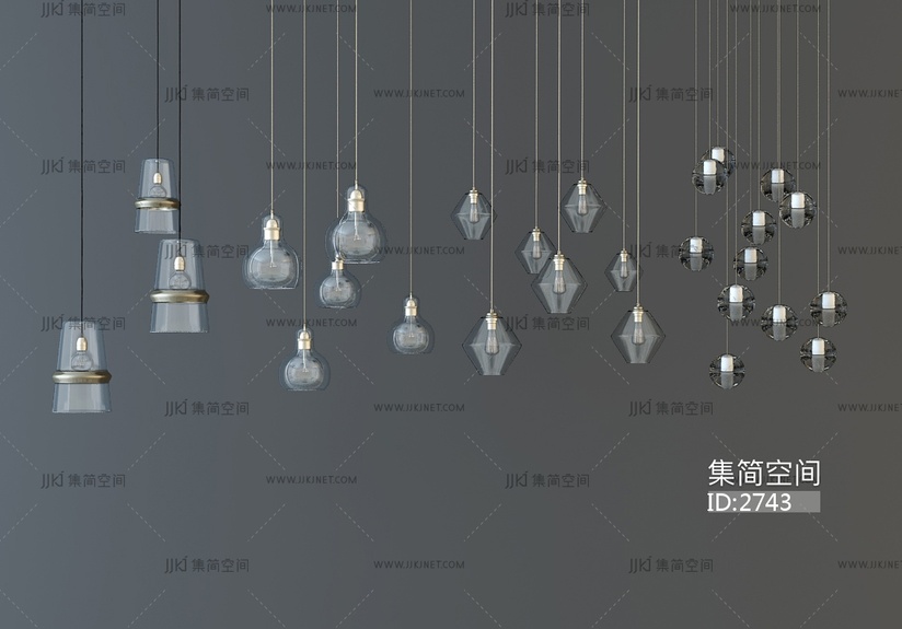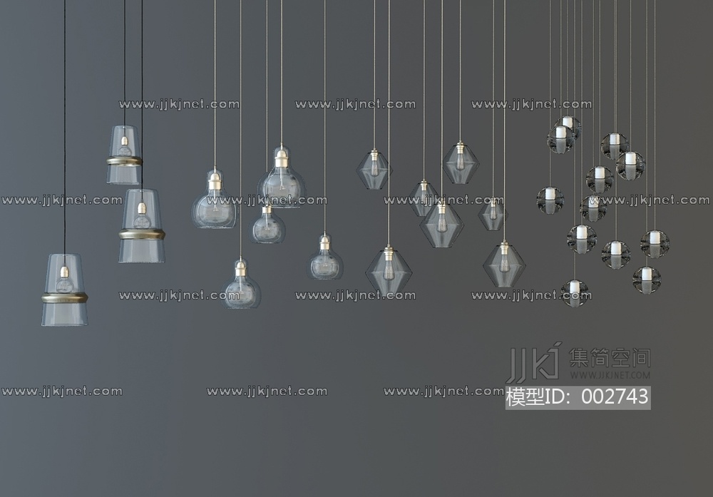 G02现代玻璃小吊灯组合 3d模型下载 [模型ID:2743]