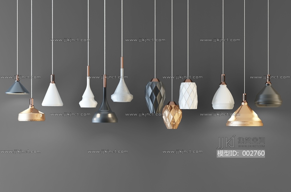 H27-现代金属吊灯组合 3d模型下载 [模型ID:2760]