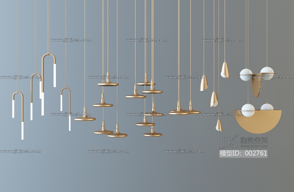 H28-现代金属吊灯组合 3d模型下载 [模型ID:2761]