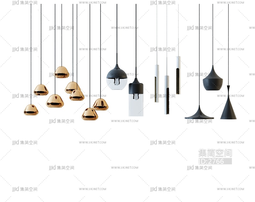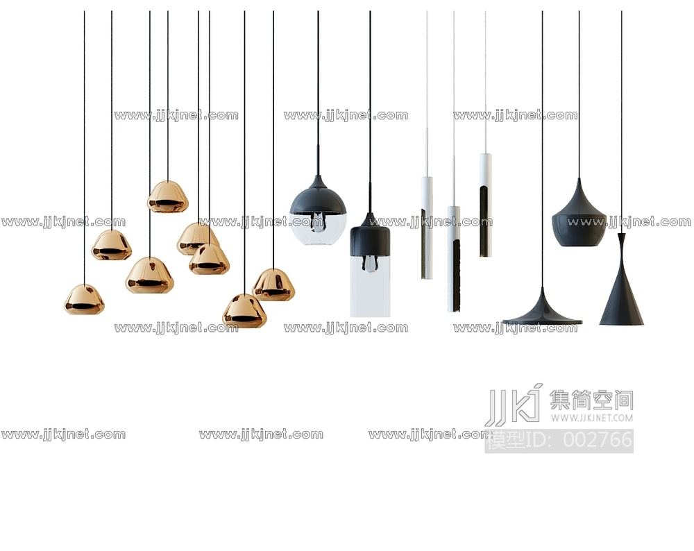 H33-现代金属小吊灯组合 3d模型下载 [模型ID:2766]
