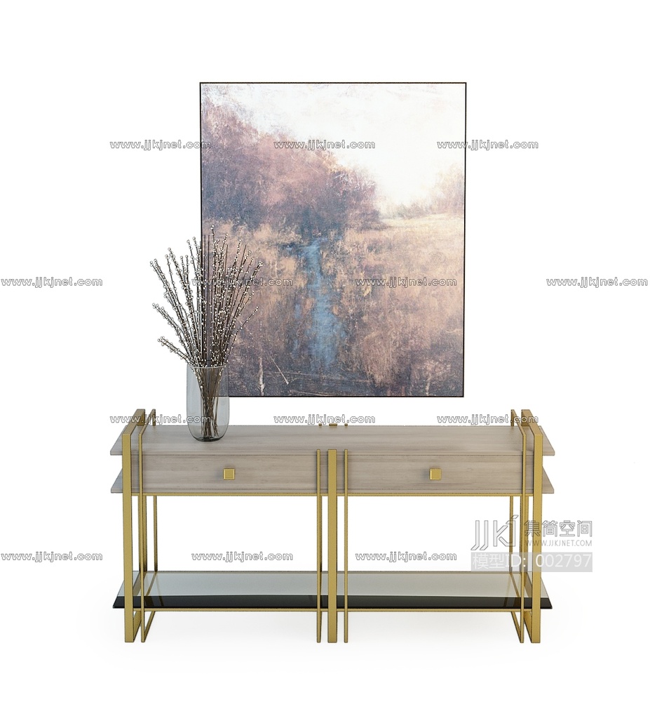 新中式条案 端景台,格栅3d模型 3d模型下载