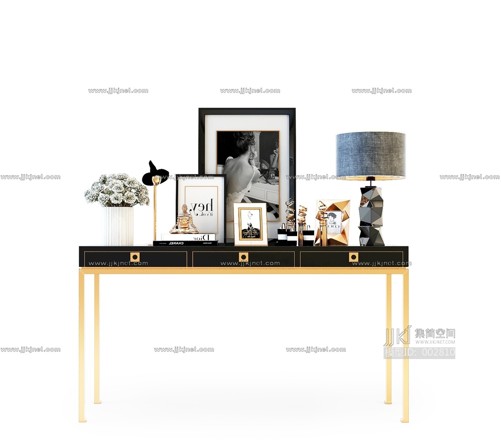 美式端景条案3D模型3d模型下载