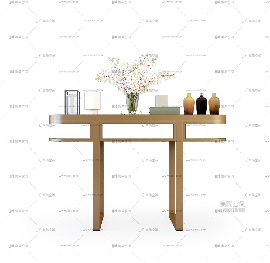 新中式条案 端景台,格栅3d模型 3d模型下载