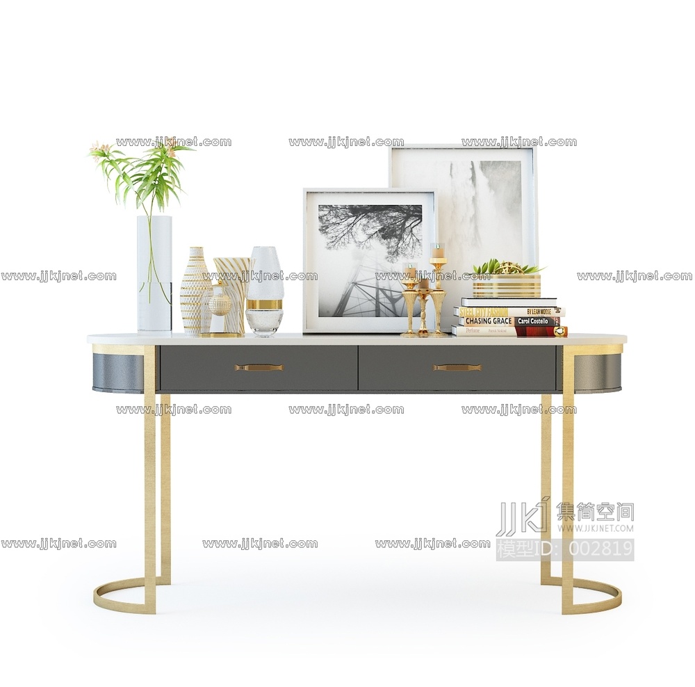 新中式条案 端景台,格栅3d模型 3d模型下载