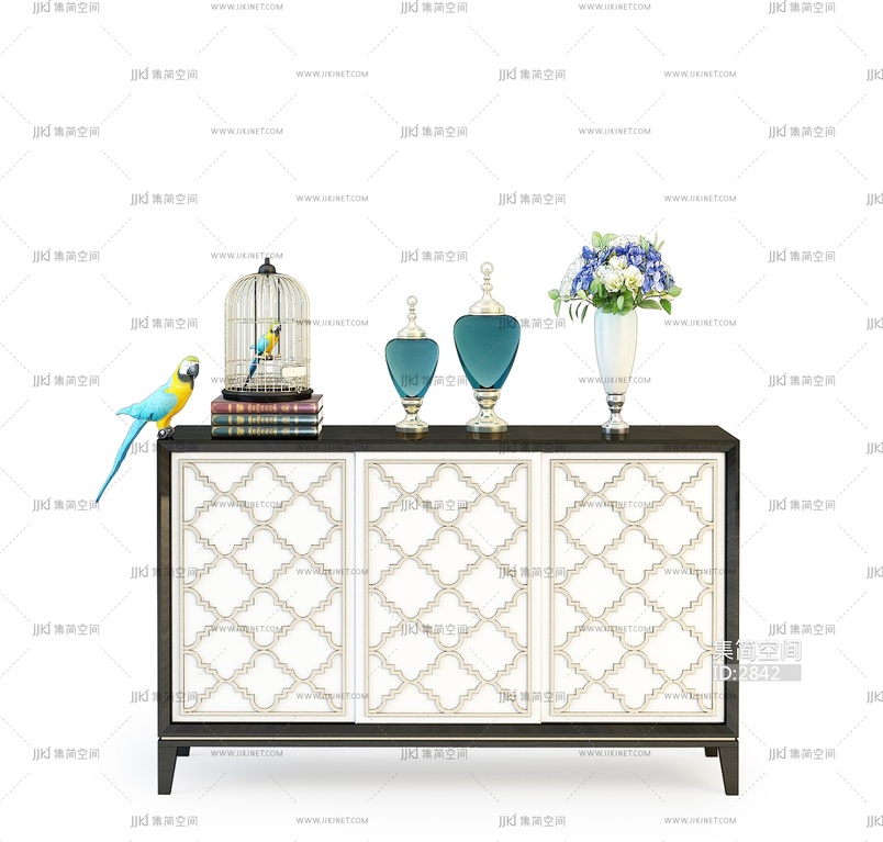 美式玄关柜摆台装饰画3D模型下载3d模型下载