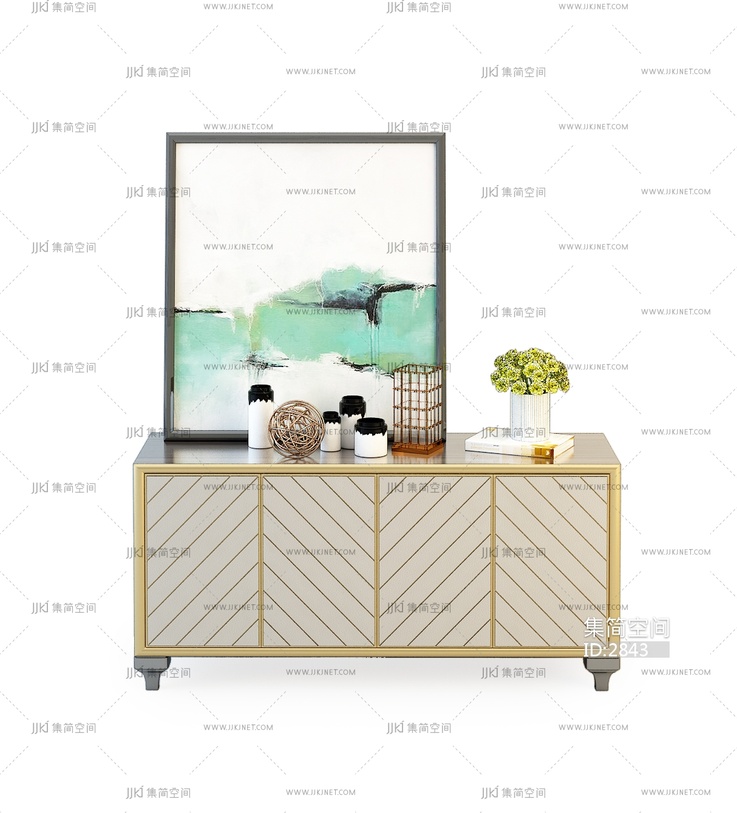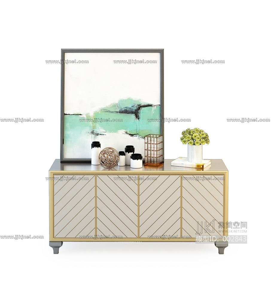 美式玄关柜摆台装饰画3D模型下载3d模型下载