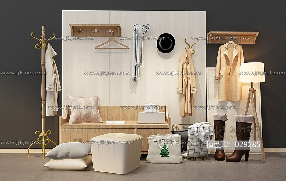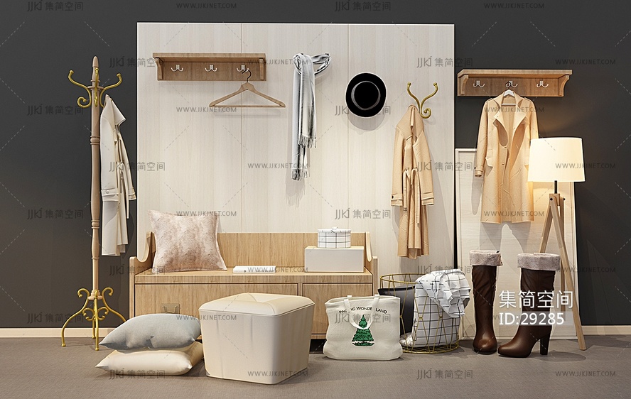 Z29-0222现代入口玄关鞋柜挂衣板女鞋衣架组合 3d模型下载 [模型ID:29285]