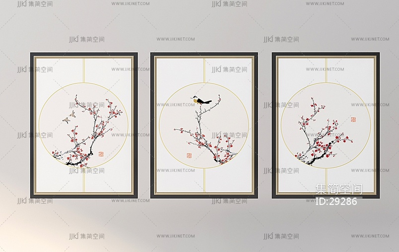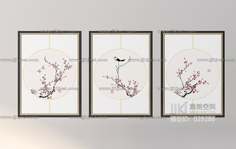 Z30-0222新中式梅花挂画装饰画 3d模型下载 [模型ID:29286]