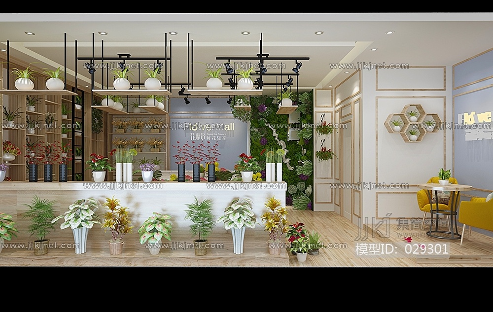 Z18-0228鲜花店植物盆栽花盆花架吊篮植物墙藤蔓 3d模型下载 [模型ID:29301]