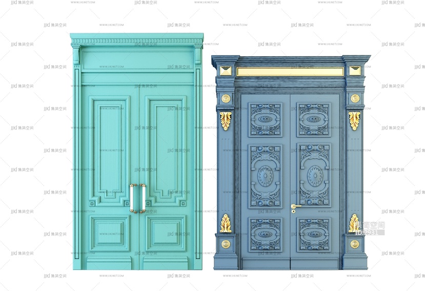 新中式单开门入户门_子母防盗门3D模型3d模型下载