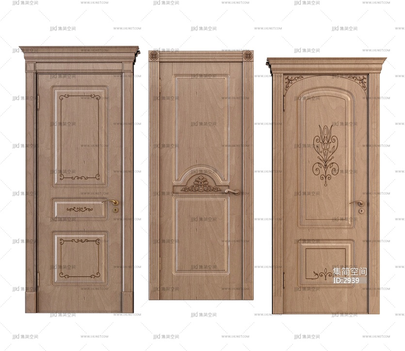 新中式单开门入户门_子母防盗门3D模型3d模型下载