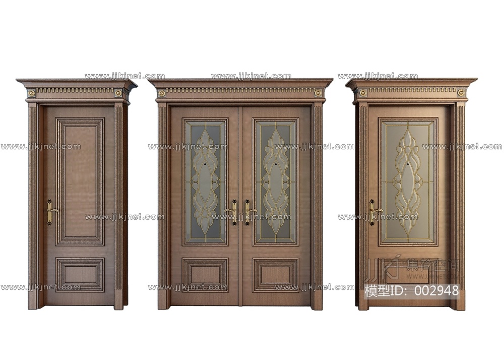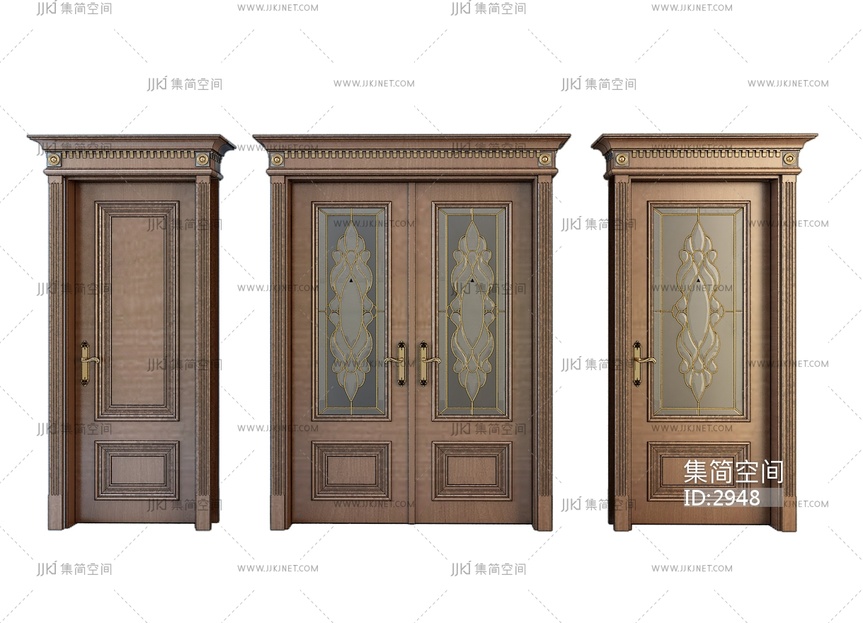 新中式单开门入户门_子母防盗门3D模型3d模型下载