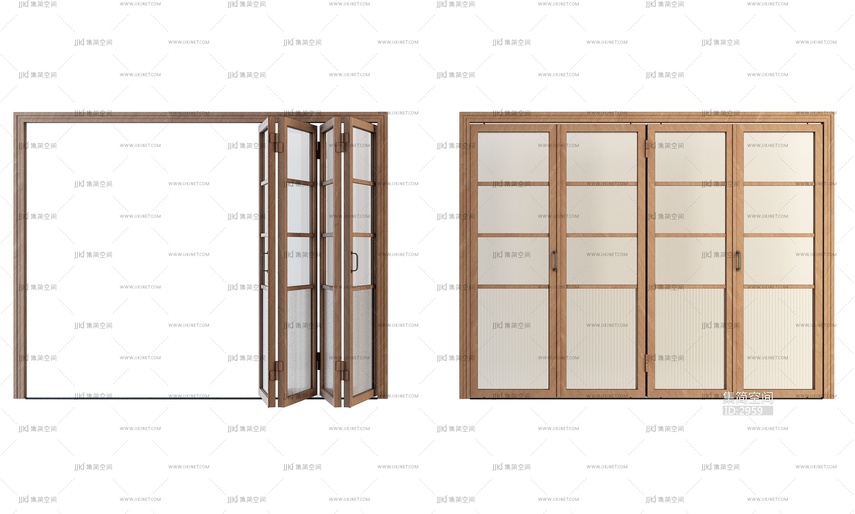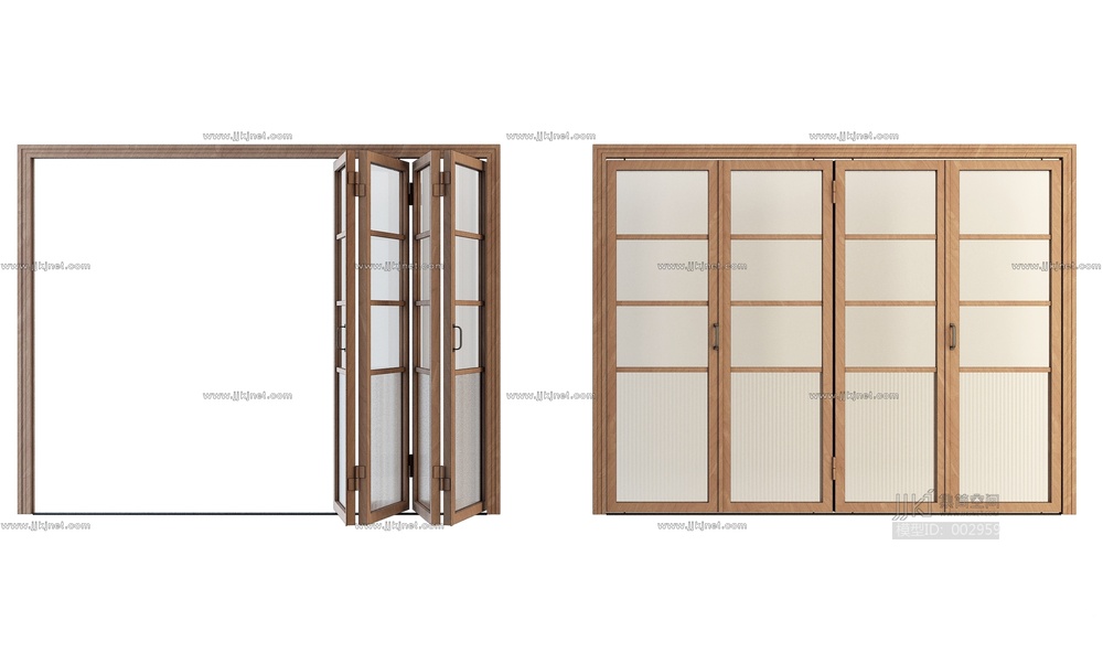 奶油简约双开门_玻璃门_厨房门_阳台门_双开门3D模型3d模型下载
