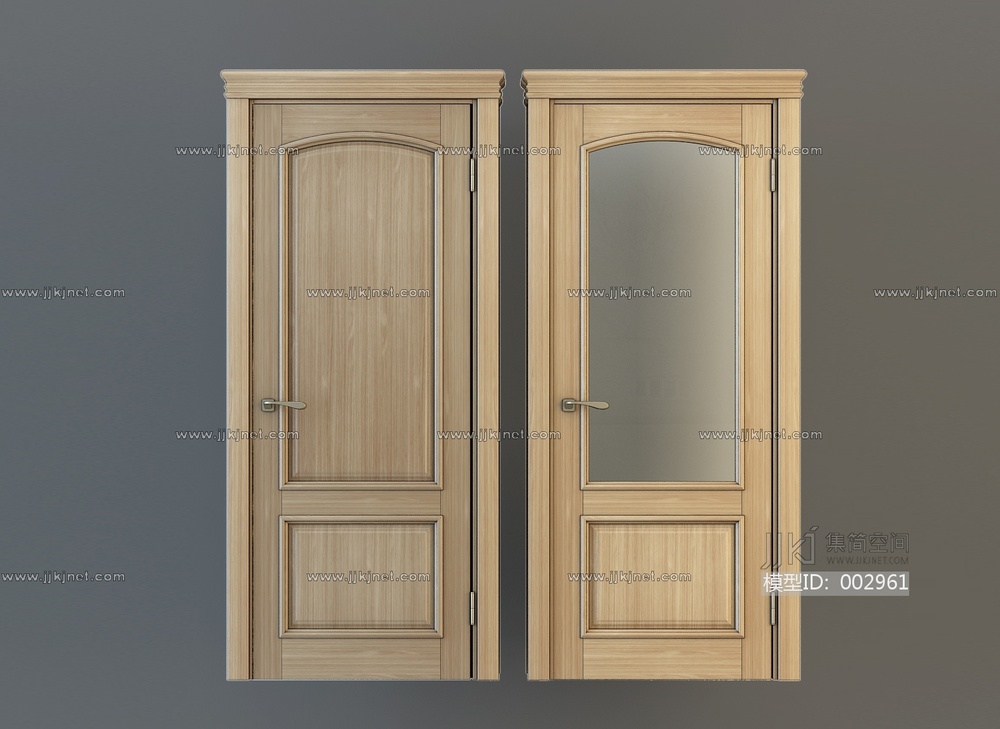 奶油简约双开门_玻璃门_厨房门_阳台门_双开门3D模型3d模型下载