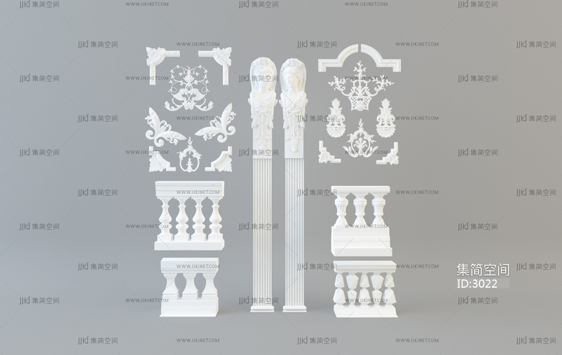 简欧欧式雕花3D模型3d模型下载