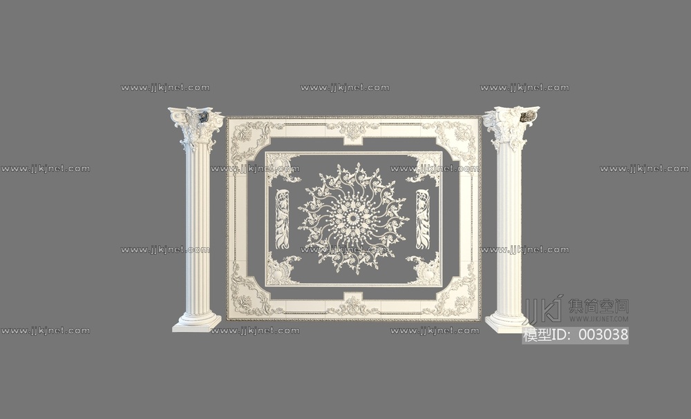 大门 门套 垭口 雕花门楣 雕花门套 罗马柱3D模型3d模型下载