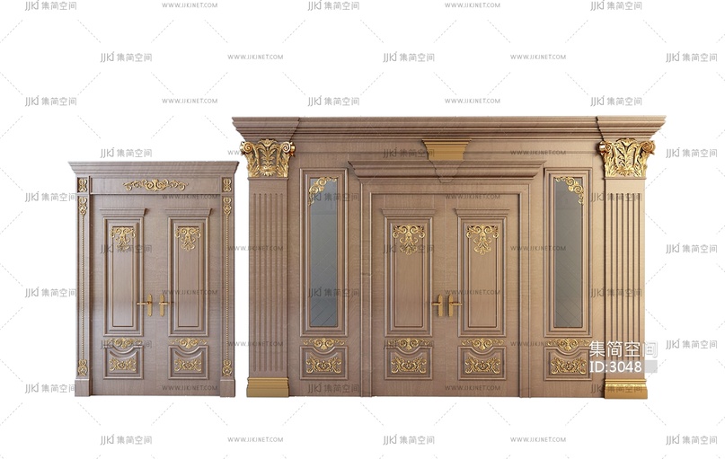 新中式单开门入户门_子母防盗门3D模型3d模型下载