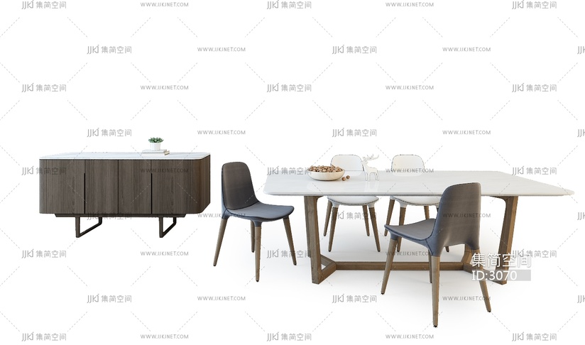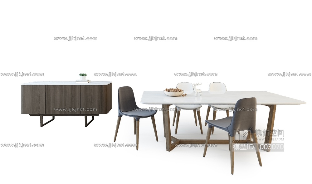 H03-0414餐桌椅组合 3d模型下载 [模型ID:3070]