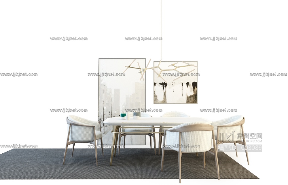X02-0416餐桌椅组合 3d模型下载 [模型ID:3089]