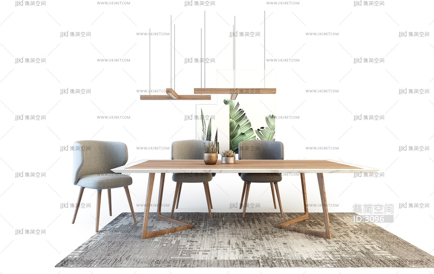 X12-0417餐桌椅组合 3d模型下载 [模型ID:3096]