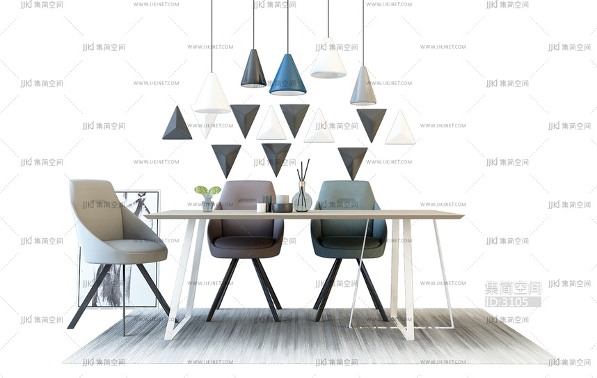X23-0417餐桌椅组合 3d模型下载 [模型ID:3105]