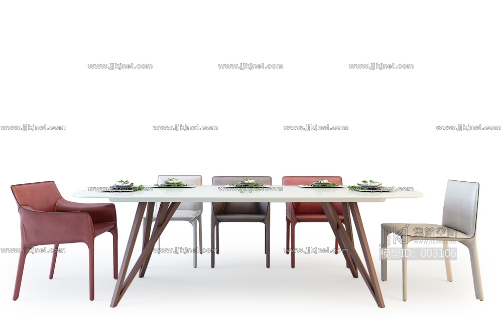 X24-0417餐桌椅组合 3d模型下载 [模型ID:3106]