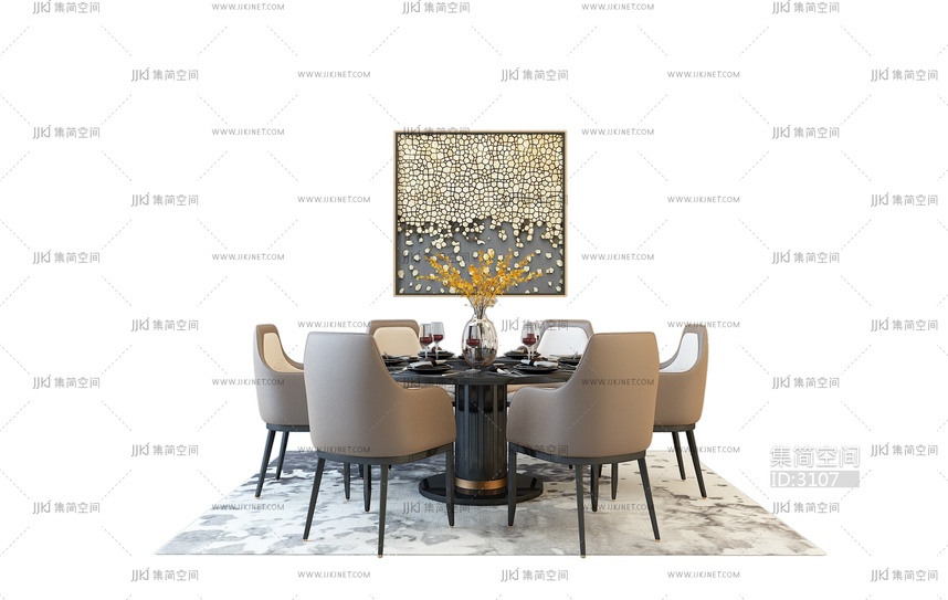 X25-0417餐桌椅组合 3d模型下载 [模型ID:3107]