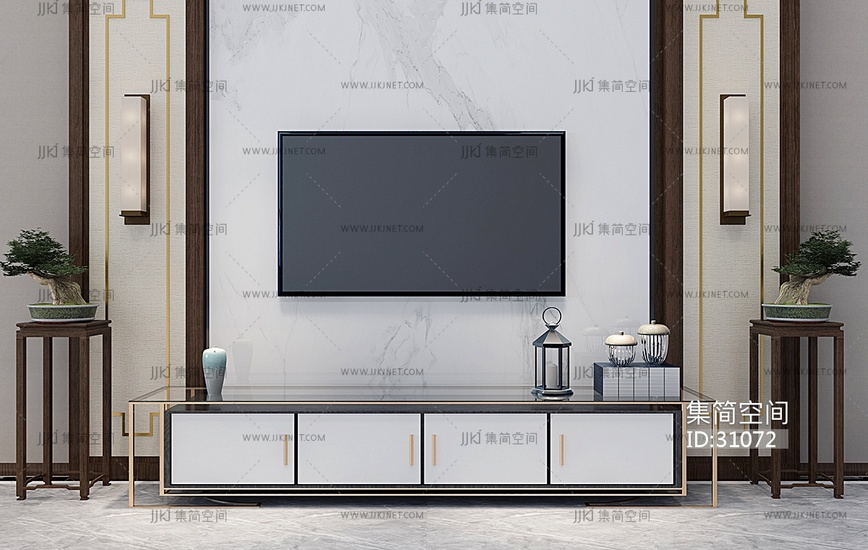 Z14-0227新中式电视柜壁灯组合 3d模型下载 [模型ID:31072]