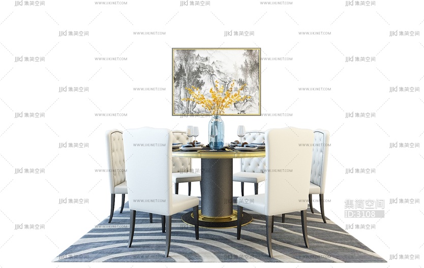 欧式美式圆桌餐椅椅子边桌3d模型3d模型下载