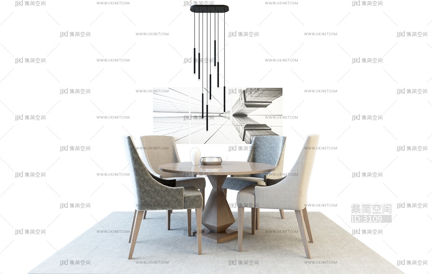 X27-0417餐桌椅组合 3d模型下载 [模型ID:3109]