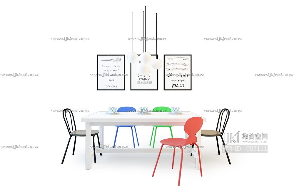 X29-0417餐桌椅组合 3d模型下载 [模型ID:3111]
