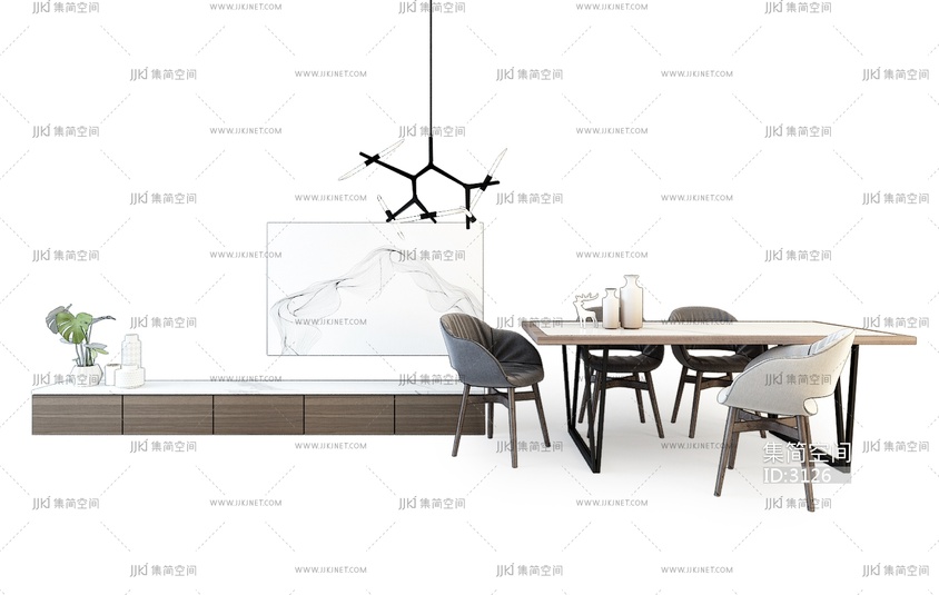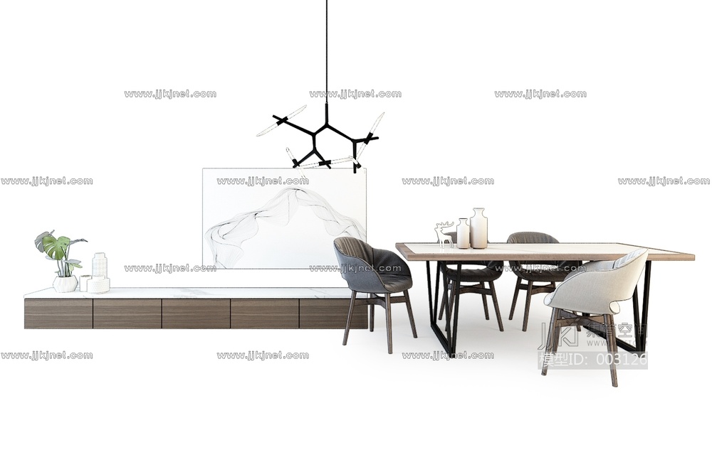 Z09-0414餐桌椅组合 3d模型下载 [模型ID:3126]