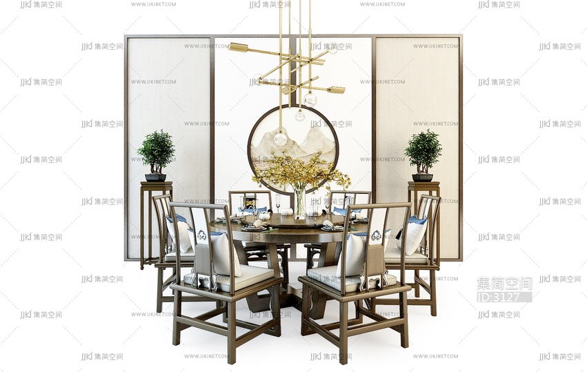 Z11-0416餐桌椅组合 3d模型下载 [模型ID:3127]