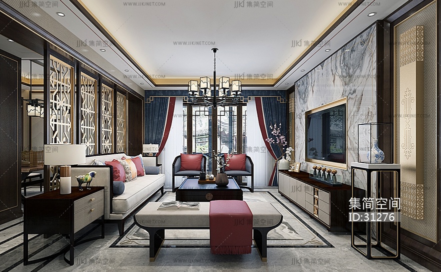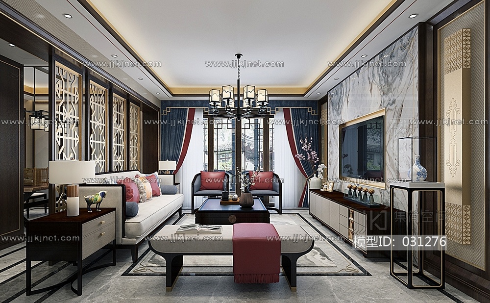Z12-0227新中式客厅沙发茶几电视柜沙发墩大型壁灯摆台花架 3d模型下载 [模型ID:31276]