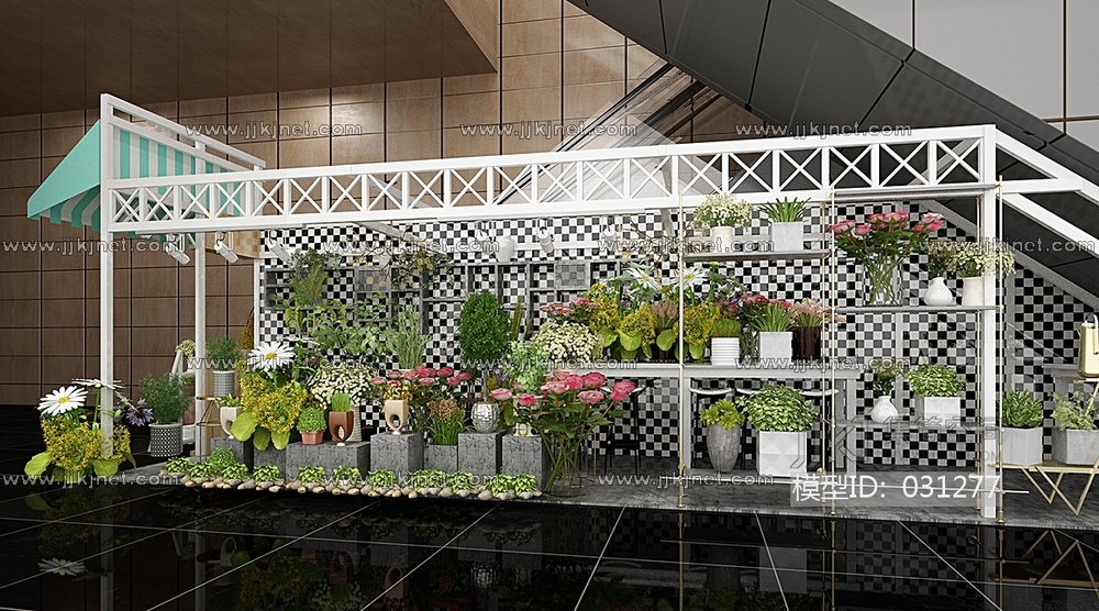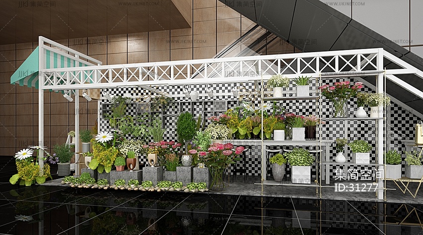Z33-0227花店鲜花花店植物铁艺花架盆栽吊篮花槽 3d模型下载 [模型ID:31277]