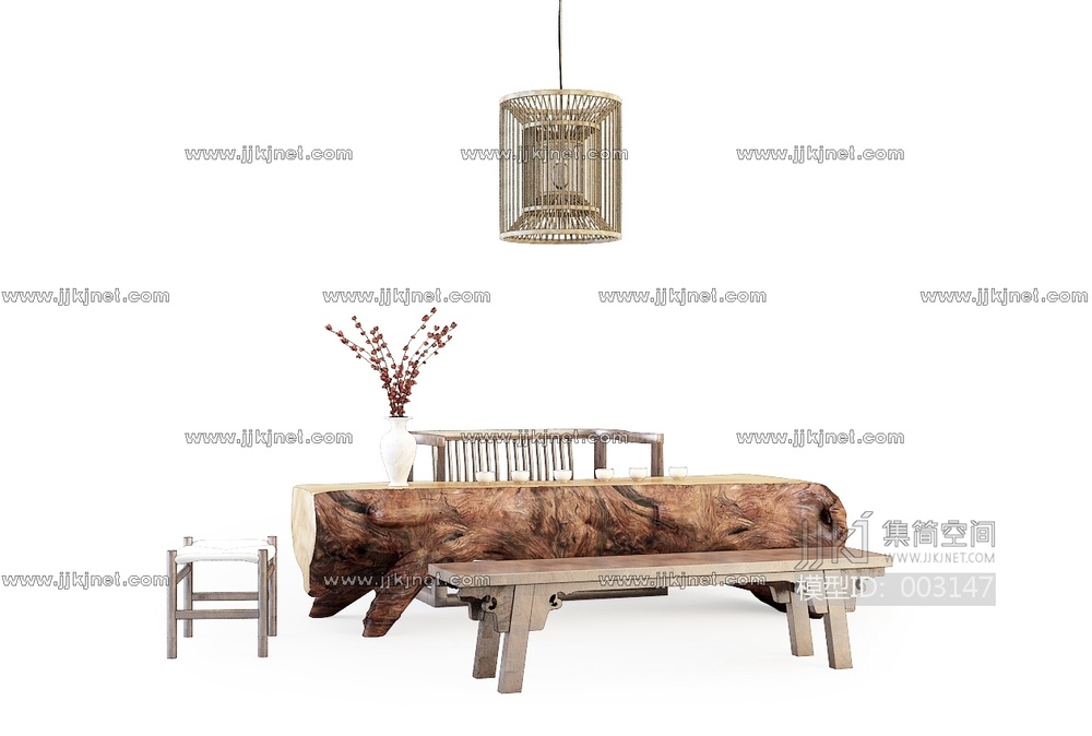 G08-0417茶桌椅组合 3d模型下载 [模型ID:3147]