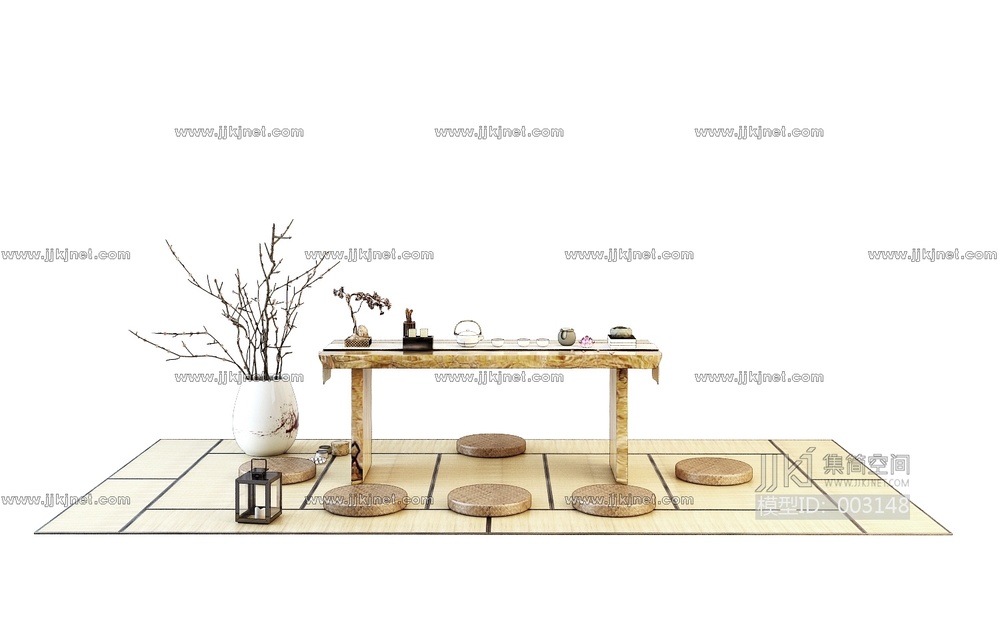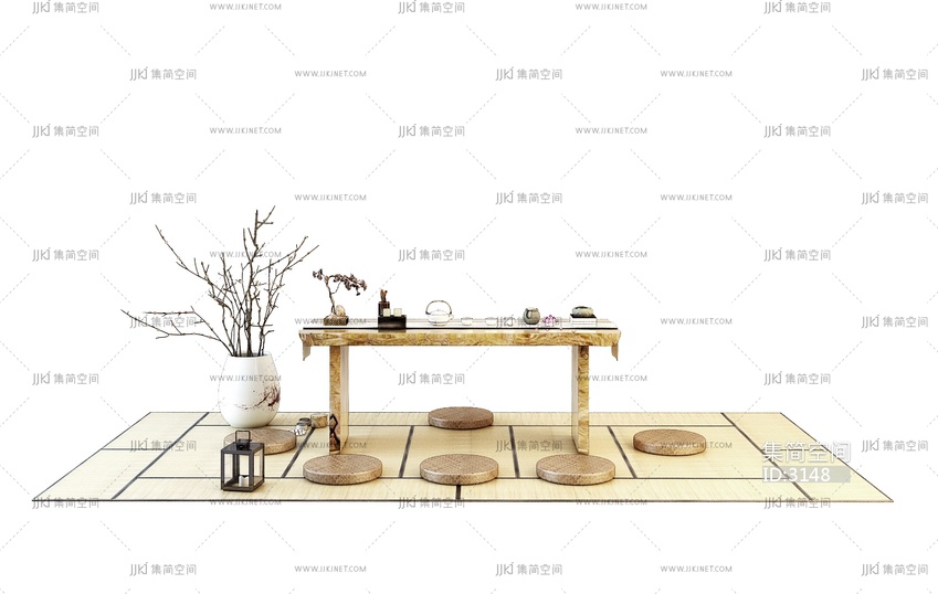 G10-0417茶桌椅组合 3d模型下载 [模型ID:3148]